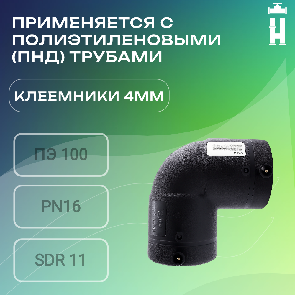 Электросварной отвод 90 градусов 63x90" мм ПЭ 100 SDR 11 AVIS PLAST предназначен для изменения направления магистрали ПНД диаметром 63 мм в процессе монтажа водопроводов с давлением до 1,0 МПа, и газопроводов до 1,6 МПа.