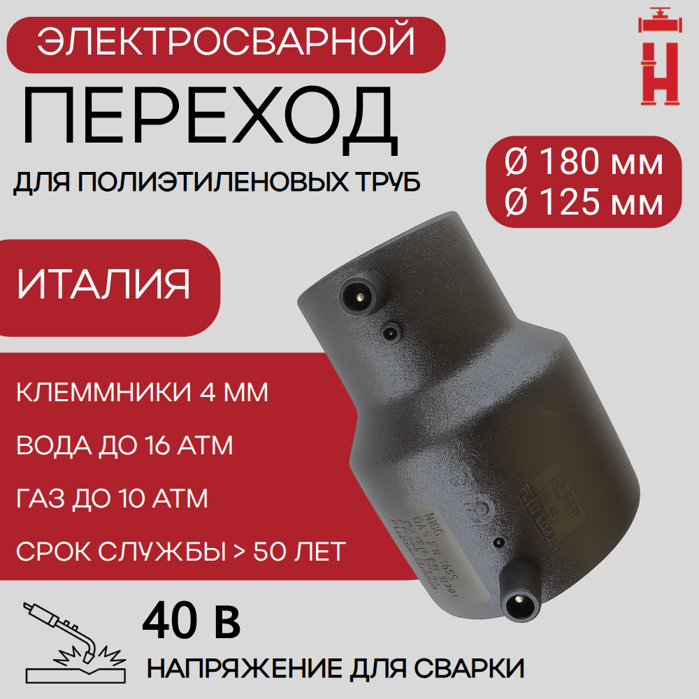 Электросварной переход 180/125 SDR 11 ПЭ 100 для труб водоснабжения и газоснабжения с закладными электронагревателями (ЗН) в наличии на складах в Санкт-Петербурге и Ленинградской области. У нас есть доставка электросварного перехода 180/125 SDR 11 ПЭ 100 в любой город России через любую транспортную компанию за 1- 5 дней. Электросварные переходы соответствуют ГОСТ и международным стандартам.