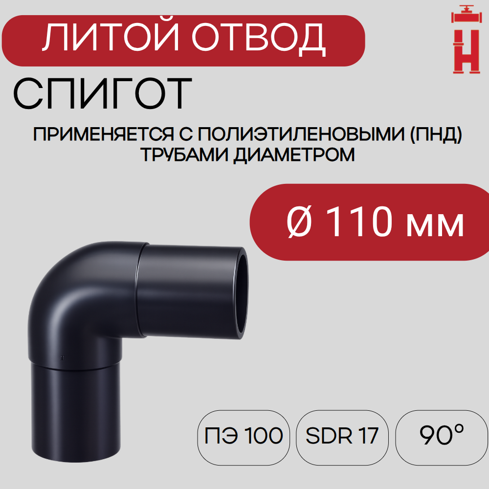 Купить отвод литой 90 гр 110 мм SDR 17 в компании «Наружные трубопроводы» с доставкой по России от 1 дня в любой город.