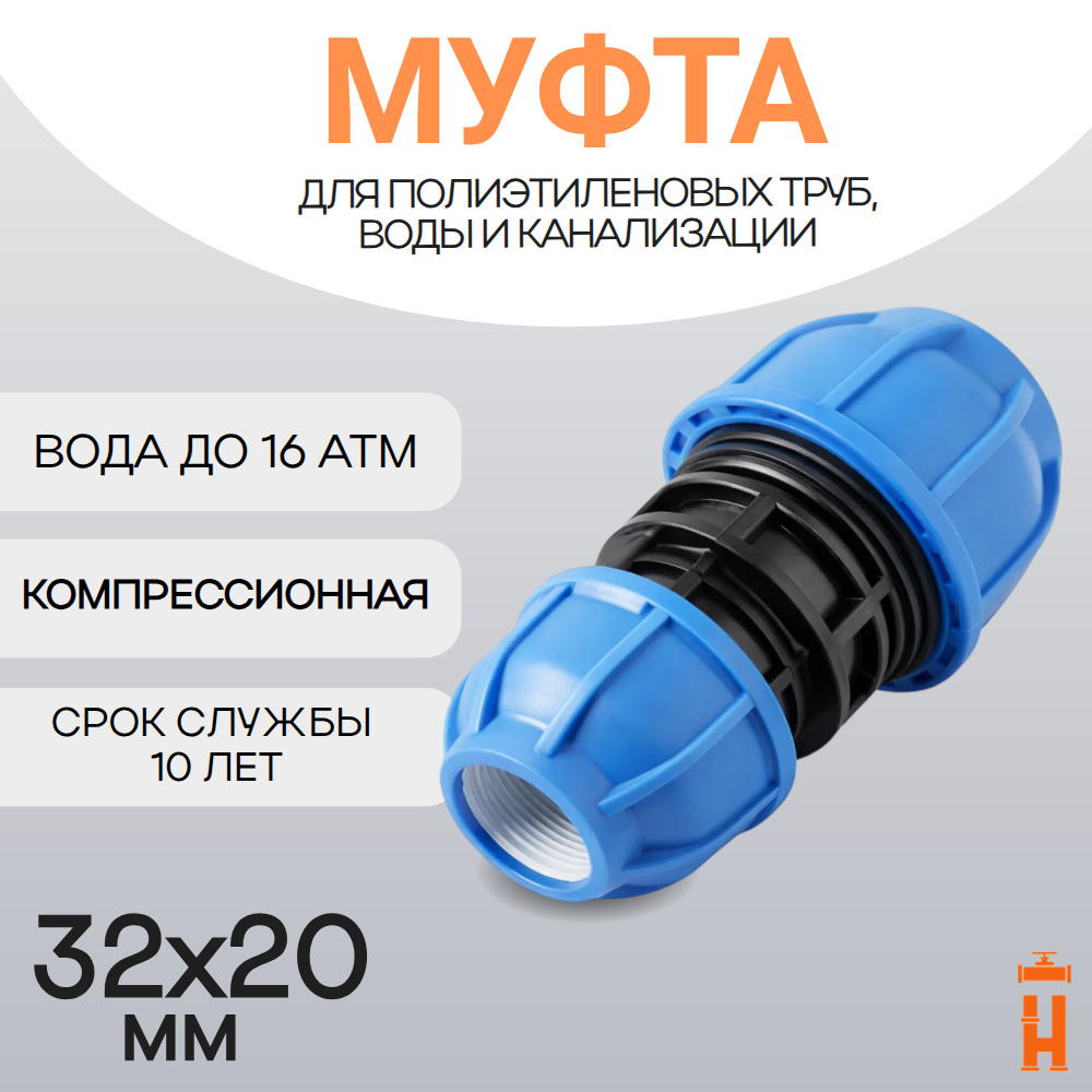 Муфта переходная компрессионная d32х20 мм используется для расширения или заужения диаметра трубопроводов с рабочим давлением 16 атмосфер и максимальной рабочей температурой +40 °С. Монтаж фитинга осуществляется при помощи компрессионного ключа, который можно купить на нашем сайте.